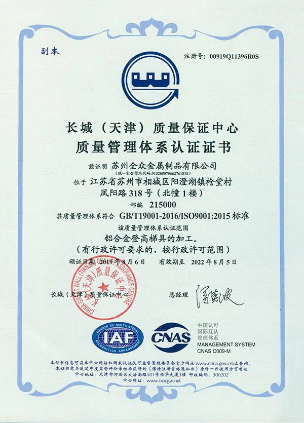 开云网页版·官方端网站-开云(中国)成立于2013年3月,注册资本500万元,是一家从事铝合金登高工具生产及销售的企业,开云网页版·官方端网站-开云(中国)坐落于“人间天堂”苏州市,毗邻阳澄湖度假区,交通十分便利。在铝合金产品加工有着很深厚的底蕴和丰富的经验。同时是铝合金登高产品解决方案的供应商。公司通过ISO9001质量管理体系认证,将公司发展的步伐向前迈进一步。
