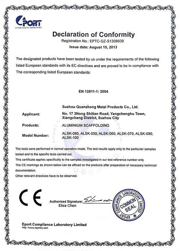 开云网页版·官方端网站-开云(中国)专注铝合金制品的开发“产品就是人品”的企业理念,不断进行技术创新、设备创新、服务创新、和管理方式创新来继续研发出更多满足未来发展需要的产品, 公司产品通过欧盟认证取得CE认证并取得证书,铝合金脚手架系列产品通过SGS认证,铝合金平台和梯具类产品均严格按照GB12142-2007,GB17888等标准设计生产。